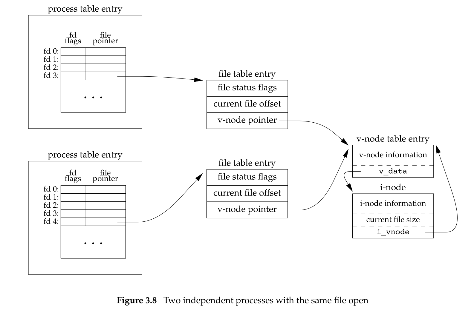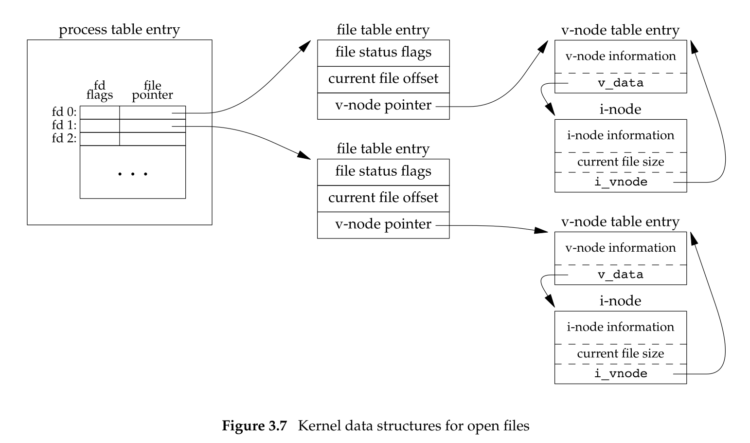 由 open 和 openat 函数一定是最小的未用描述符值。这一点被某些应用用来在标准输入,标准输出,标准错误上打开新文件。例如:应用可以先关闭标准输出,然后打开另一个文件,执行打开操作前就能知道该文件一定会在描述符 1 上打开。