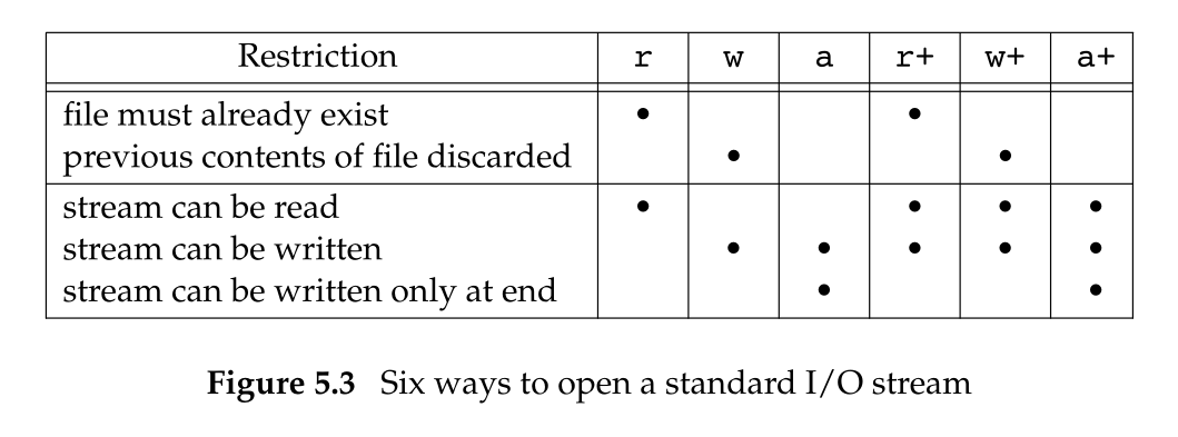 对于 fdopen 函数,因为它基于一个已存在的文件描述符,并且该文件总是存在的。所以,fdopen 不能截断它为写而打开的任一文件。并且,标准 I/O 追加方式也不能用于创建该文件。