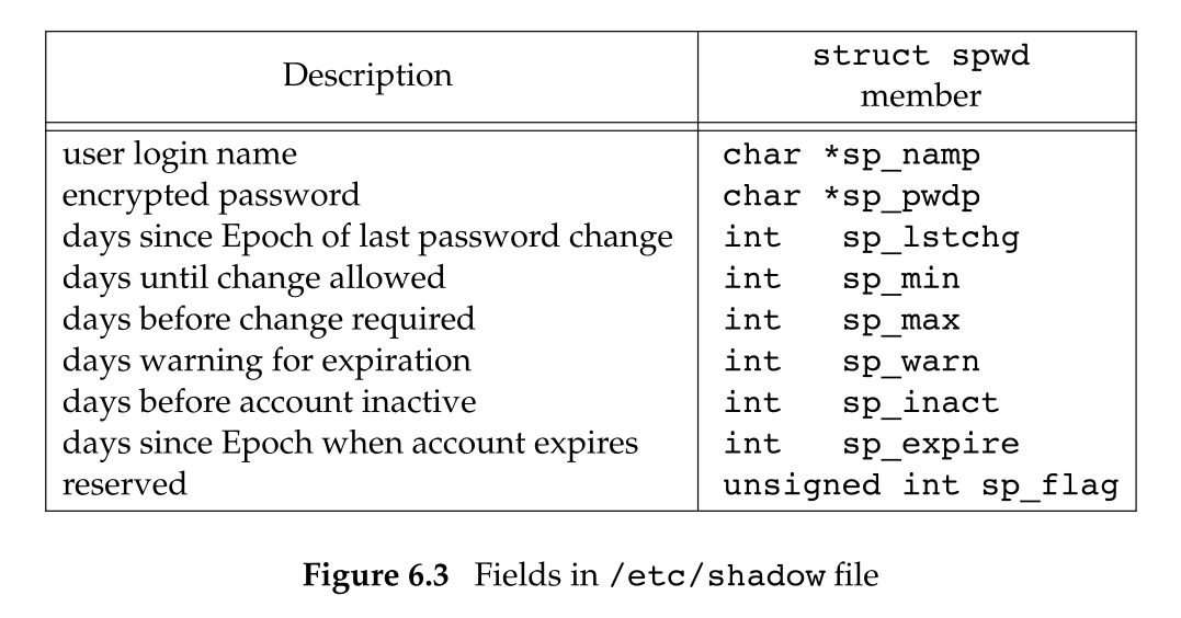 在 Linux 中,有一组用于访问阴影口令文件的函数: