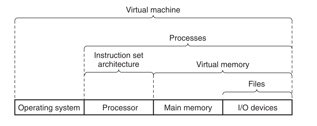 - 进程:进程是操作系统对一个正在运行的应用程序的抽象。在一个系统上可以同时运行多个程序,这些程序好像独占的使用处理器,主存,I/O 设备。