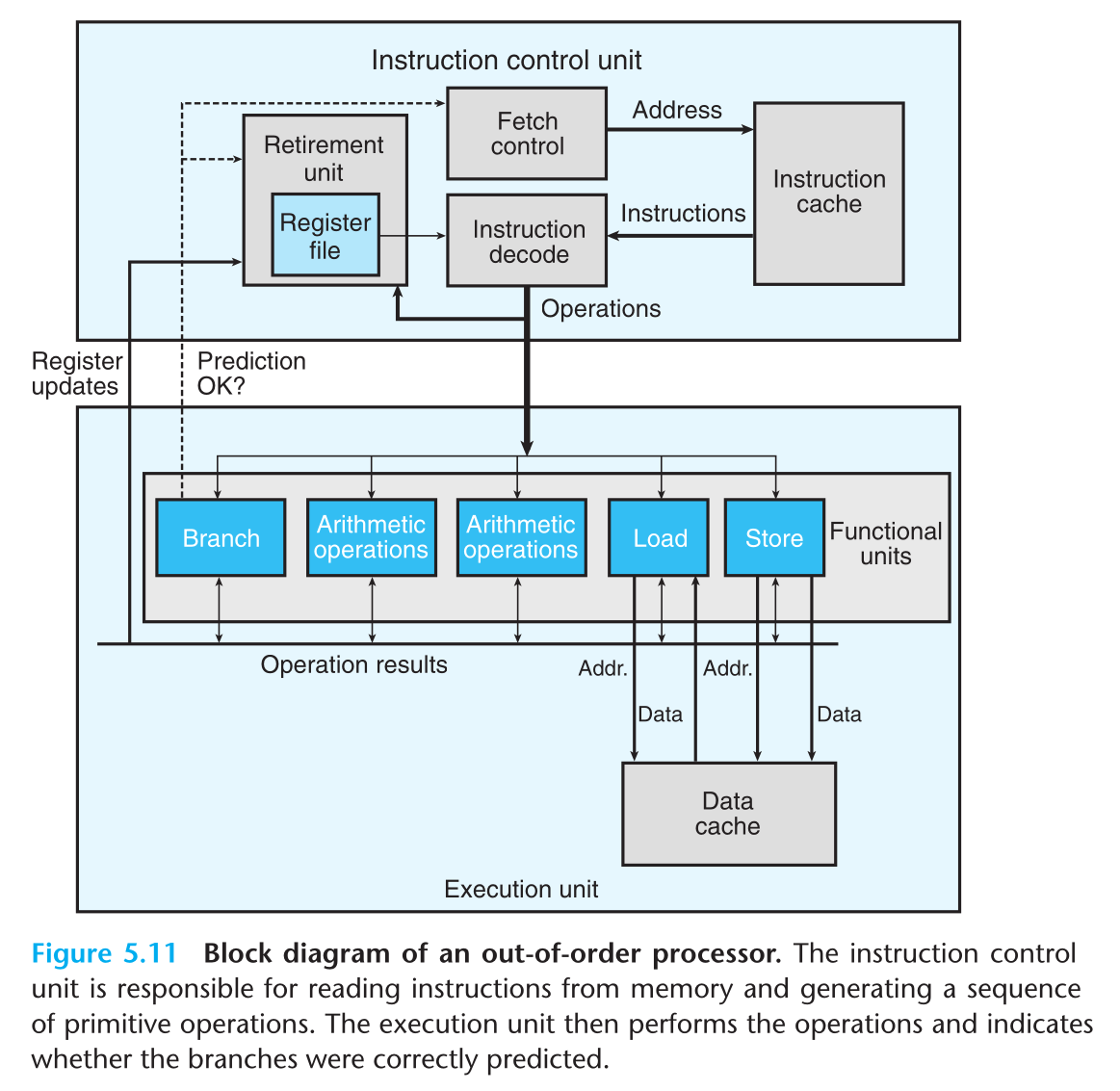 现代处理器已经发展到超标量阶段,能够在单个时钟周期内完成多个操作,并且是乱序的,即指令的执行顺序不一定要和他们在机器级程序中的顺序一致。